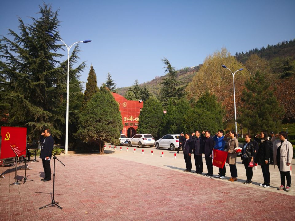 在庄严的革命烈士纪念碑前,全体党员干部整齐列队,向烈士纪念碑敬献花篮,集体默哀,表达对革命先烈的深切哀思和崇高敬意。随后,在第六党支部书记王玉宝带领下,大家举起右手,面向鲜红的党旗,重温入党誓词。最后,党员干部还集体观看了碑文,瞻仰了烈士陵墓,进行了祭扫活动。
