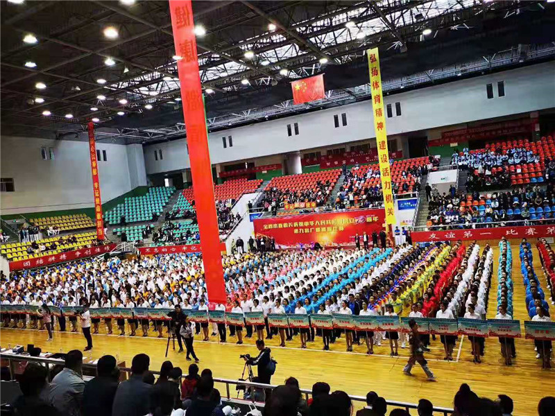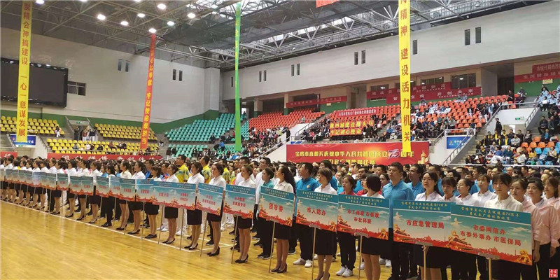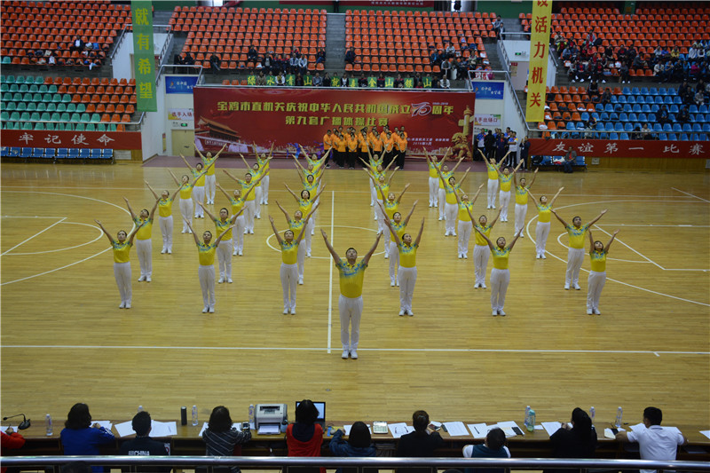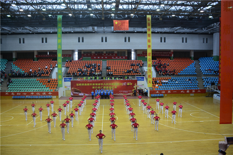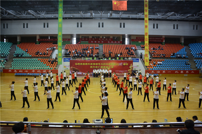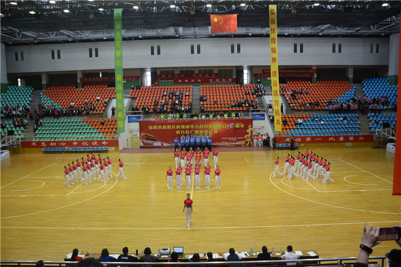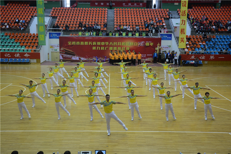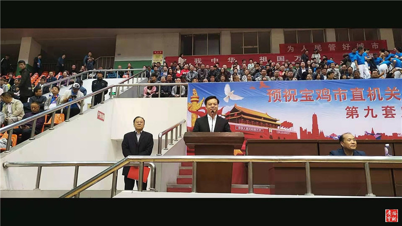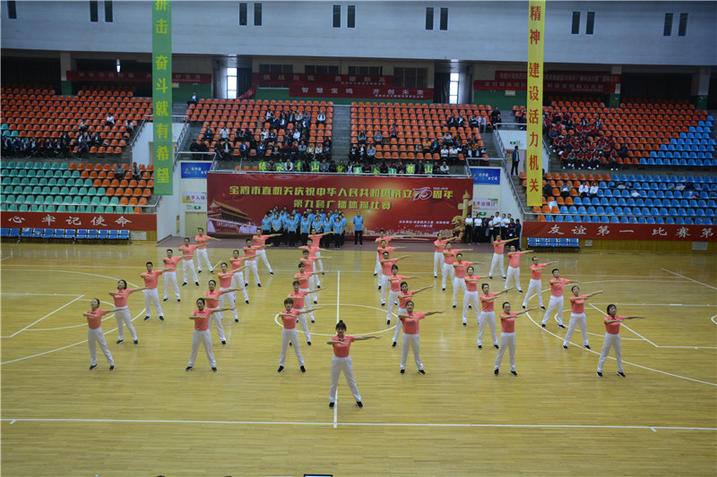 9月18日上午,由市直机关工委和市体育局主办的宝鸡市直机关庆祝新中国成立70周年第九套广播体操比赛在市体育馆开幕,来自市直机关的56个单位,48支代表队参赛及啦啦队等共计2000多人现场参与。市领导富君、宋建国出席,副市长张礼涛宣布比赛正式开始。
