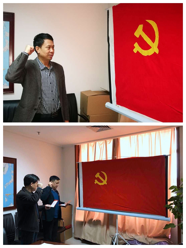 重温一次入党誓词。在党员活动室,6名党员面向鲜红的党旗,郑重宣誓“我志愿加入中国共产党,拥护党的纲领,遵守党的章程,履行党员义务…”,重温入党誓词,回忆入党初心,表达了对党的热爱和为党的事业奋斗终身的决心,展示了再创新业绩的豪迈激情。