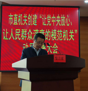 4月15日上午,市直机关工委召开市直机关创建“让党中央放心、让人民群众满意的模范机关”动员大会。市委副秘书长姚俊峰出席会议。市直机关各直属党组织书记及市直机关工委全体人员参加会议。