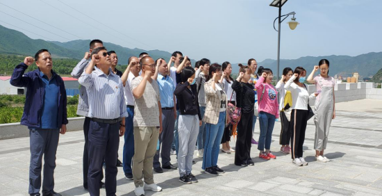 全体人员在烈士纪念碑前默哀致敬,鞠躬行礼,缅怀英烈,共产党员集体重温入党誓词。