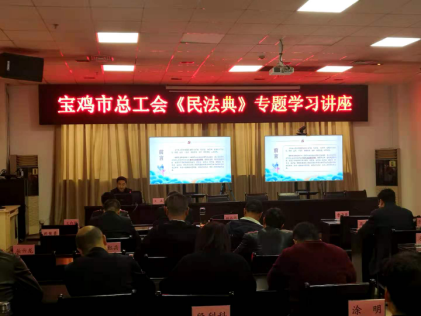 11月13日上午,宝鸡市总工会在机关二楼会议室组织开展《民法典》专题学习讲座。宝鸡市总工会机关、市工人文化宫全体干部职工参加学习。