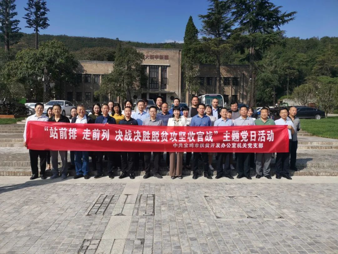 为进一步激发全体党员干部工作热情,扎实有效推进脱贫攻坚各项任务落实。9月29日,市扶贫办机关党支部组织全体党员干部前往金台区长乐塬工业遗址公园开展“站前排 走前列 决战决胜脱贫攻坚收官战”主题党日活动。