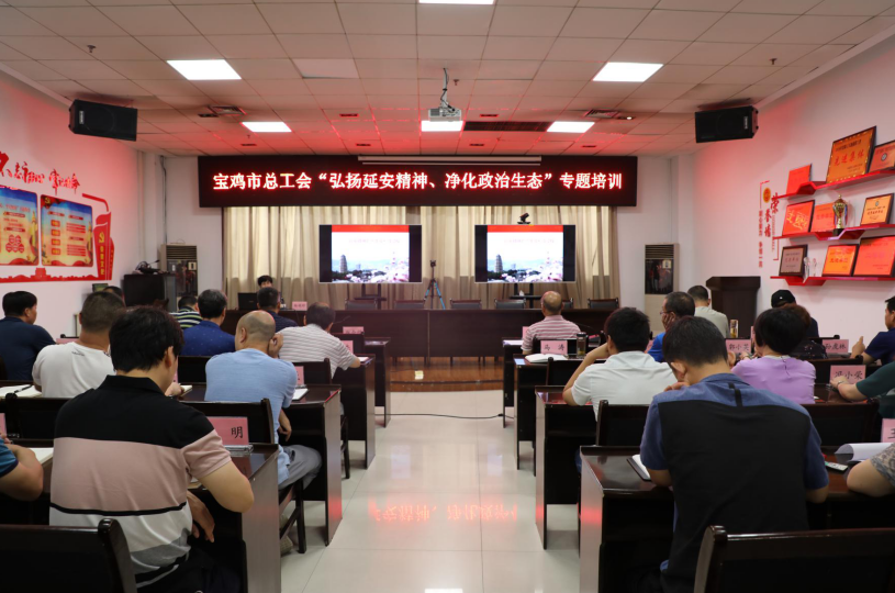 7月30日,宝鸡市总工会举办“弘扬延安精神 净化政治生态”专题培训,邀请市委党校副教授杨娟珍做了题为《弘扬延安精神、发挥模范作用》的专题讲座,市总工会机关及市工人文化宫全体干部职工参加培训。