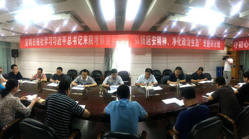 7月28日上午,宝鸡日报社党委学习习近平总书记来陕考察重要讲话“弘扬延安精神、净化政治生态”专题研讨班开班。宝鸡日报社党委书记、社长冯军平参加开班仪式并作动员讲话。会议强调,全社党员干部要切实提高政治站位,强化对延安精神内涵的理解,用延安精神滋养初心、淬炼灵魂,汲取信仰力量、寻找党性差距,坚定对党的信念,坚守正确政治方向和宣传导向,按照市委十二届八次全会安排部署,不断增强做好新闻宣传工作的政治自觉、思想自觉和行动自觉,为谱写新时代宝鸡追赶超越新篇章提供强有力的舆论支持和思想保证。