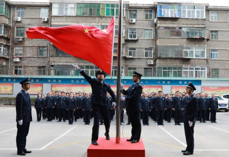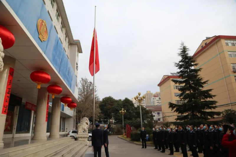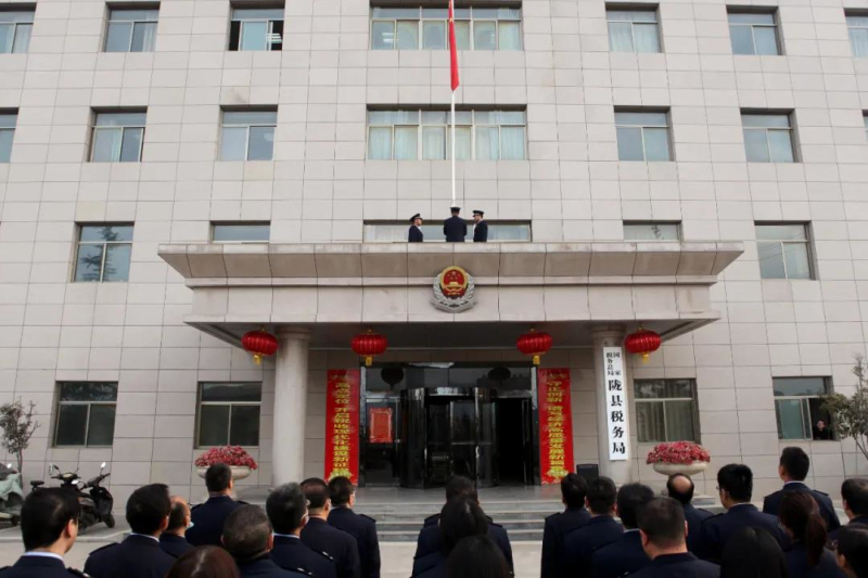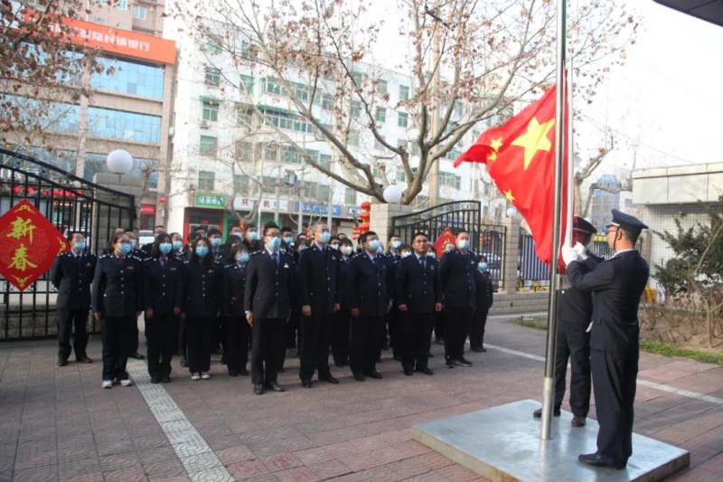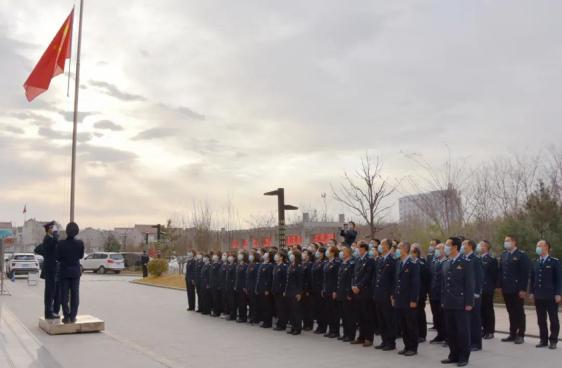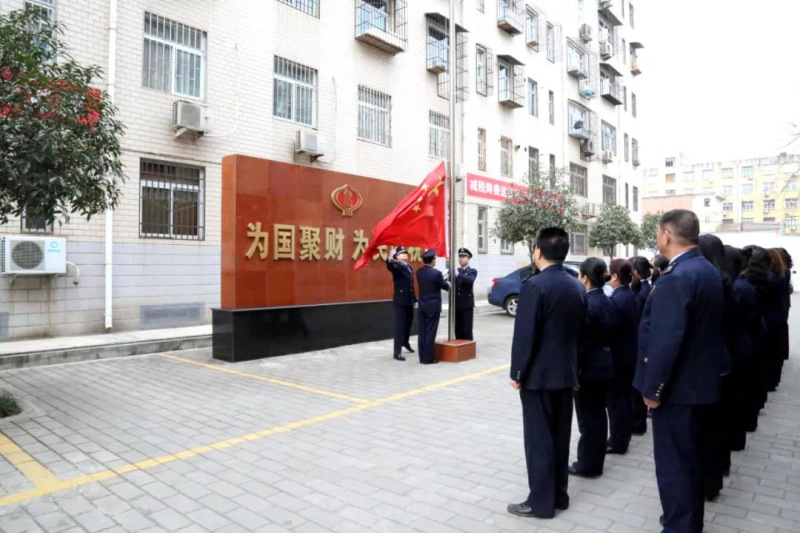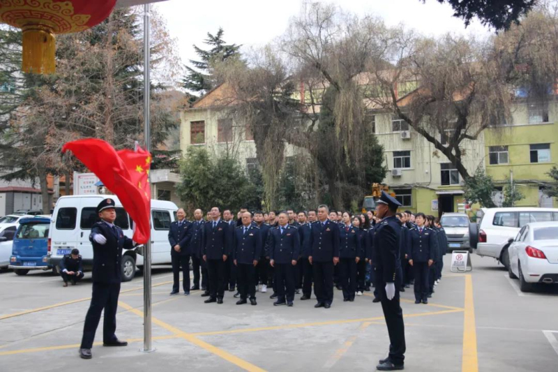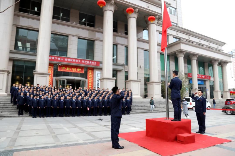 一元复始万象新。2月18日,宝鸡市税务局举行升国旗仪式,全体税务干部以崭新的面貌、昂扬的精神、奋进的姿态迎接新年的到来。