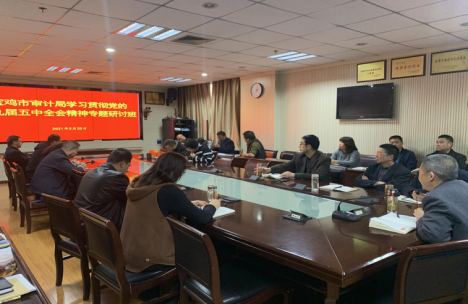 市审计局党组表示,学习贯彻党的十九届五中全会和习近平总书记重要讲话精神,是当前和今后一个时期全市审计系统的重要政治任务,党员领导干部要切实发挥“关键少数”示范表率作用,坚持先学一步、深学一层,带头学习、带头宣讲、带头贯彻,切实把广大审计人员思想行动统一到党中央和省市委决策部署上来,依法全面履行审计监督职责,为全面建设社会主义现代化国家作出积极贡献。要切实学深悟透全会精神,准确把握新发展阶段、新的历史方位和实践要求,切实找准新时代追赶超越的坐标定位,贯彻新发展理念、融入新发展格局,更好地发挥审计在党和国家监督体系中的重要作用。要认真总结“十三五”时期全市审计工作经验作法,深化对新时代审计工作规律性认识,加快制定“十四五”审计规划,要谋划好、实施好2021年审计工作,确保在“十四五”开局之年开好头、起好步,奋力谱写新时代审计事业追赶超越新篇章。