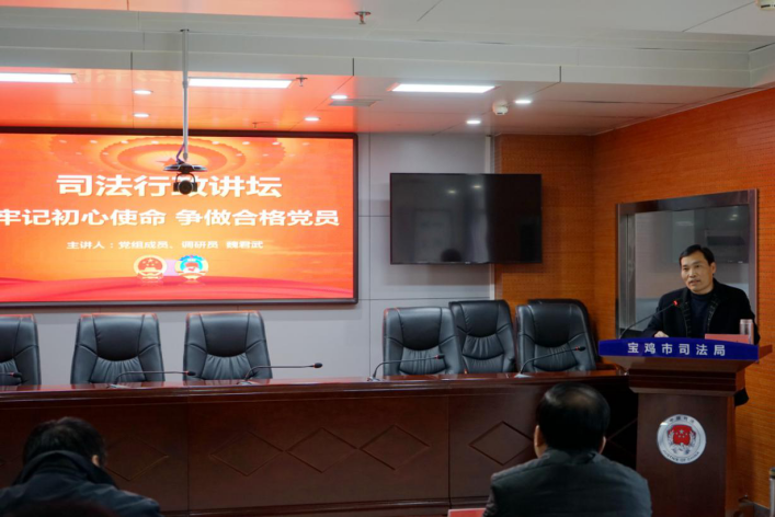 2月26日,市司法局举办“宝鸡司法行政讲坛”,局党组成员、二级调研员魏君武同志为局系统全体党员讲授“牢记初心使命,争做合格党员”专题党课。