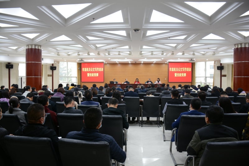 在全市上下深入学习党史、开启实施“一四五十”发展战略之际,为积极配合市直机关创建“让党中央放心,让人民群众满意”的模范机关工作要求,不断营造重视学习、崇尚学习、坚持学习的浓厚氛围,市直机关工委集中两天时间,开展市直机关公文写作培训及技能竞赛活动,进一步提高干部职工综合素质。来自市直机关的160余人参加培训及竞赛活动。