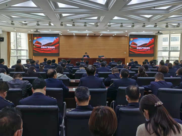 为深入推进党史学习教育学深落细,3月30日下午,市城管执法局党组举办党史学习教育宣讲报告会,邀请市委党史研究室主任许道平作了题为《中国共产党在宝鸡》的宣讲报告。局系统县处级干部、局属单位领导班子成员、局机关全体人员和局属单位部分党员共计200余人聆听了报告。报告会由市城管执法局党组书记、局长吴昱昕主持。