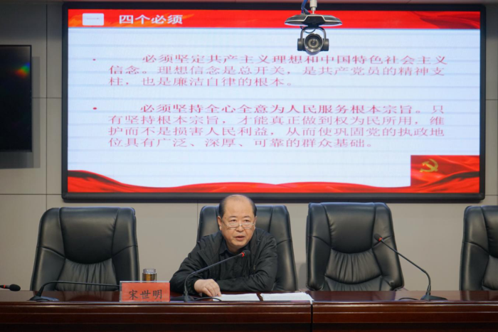 二级调研员宋世明以解读《中国共产党廉洁自律准则》为主题,对修订《准则》的历史背景作了简要介绍,全面介绍了《准则》的具体内容,精准解读了“四个必须”、“四个坚持”、“四个自觉”,引导全局党员干部要把学习《准则》同党史学习教育和司法行政队伍教育整紧密结合起来,按照《准则》的要求,提高自律意识,防微杜渐,永葆清正廉洁的政治本色。