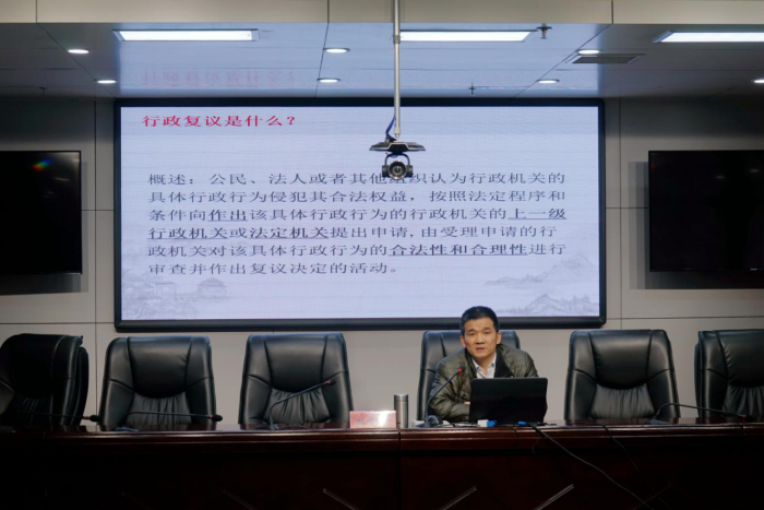 行政复议应诉科科长彭培泳围绕行政复议的概念、受案范围、参与人、程序四大方面对行政复议的相关内容进行了介绍。结合多年行政复议、诉讼实务经验,通过对现实案例的细致讲解,为全体干警上了一堂生动有趣的法律宣讲课,有助提升司法行政干部的法律素养。