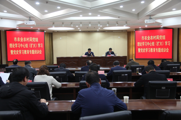 4月14日,市农业农村局召开局党组理论学习中心组(扩大)学习暨党史学习教育专题培训会。局领导班子成员,机关全体干部,局属各单位党政主要负责同志和县级干部共80余人参加会议,局党组书记、局长吕千军出席会议并讲话。