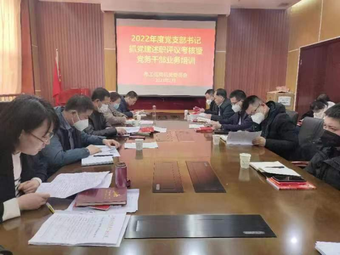 2月2日,市工信局召开2022年度党支部书记抓党建述职评议考核暨党务干部业务培训工作会,局机关党委书记葛运海主持会议并讲话,局机关党委委员、各支部委员及党小组长共22人参加会议。