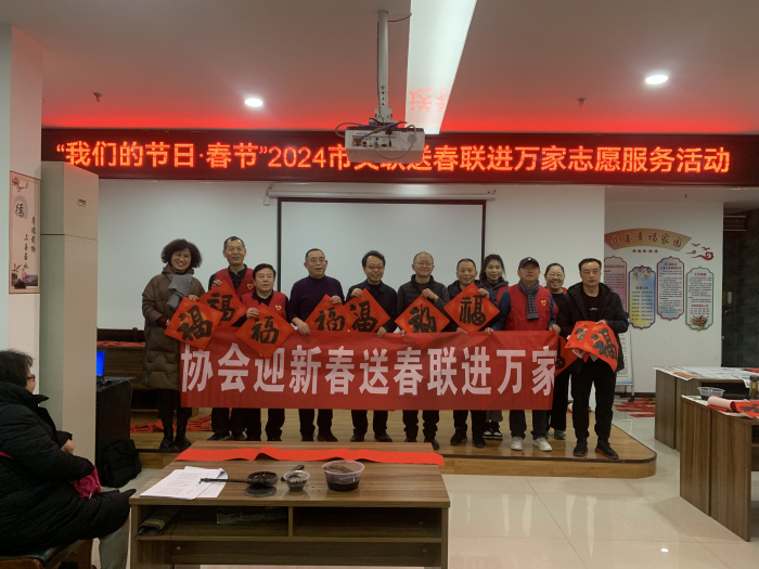 2024年2月1日下午,市文联党组成员、副主席,机关党支部书记赵会科与四级调研员、党支部副书记何帆和市书画家协会主席张鹏洲,副主席王宝健、理事刘云、任昱虎等走进渭工路社区,开展“我们的节日·春节”2024市文联送春联进万家志愿服务活动。